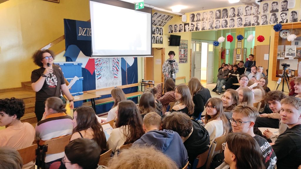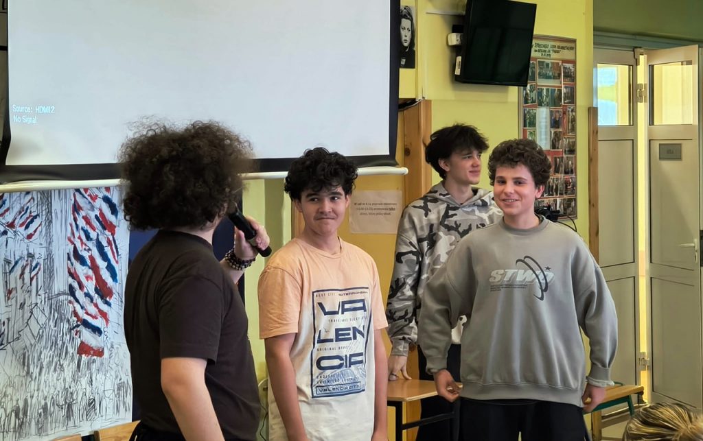 Wspólne spotkanie i towarzyszący prezentacji quiz przygotowała klasa 1B wraz z wychowawcą panem Hubertem Noskiem, który jest także szkolnym pedagogiem.